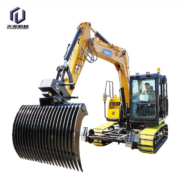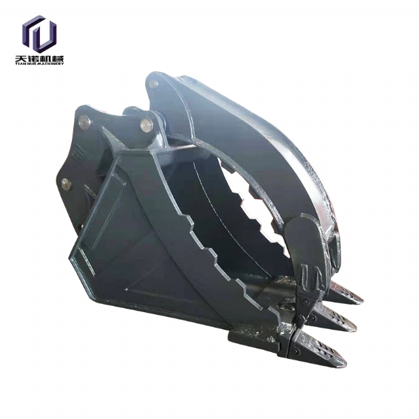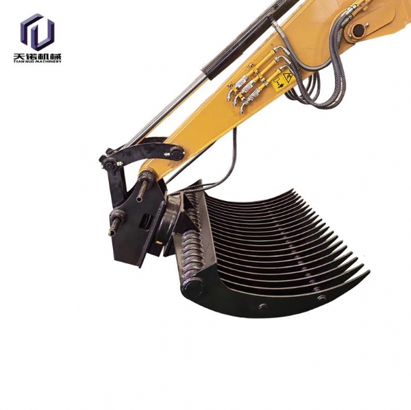 鏟斗夾:又名拇指夾,抓取重量約2.5噸,在小型木材、棒狀物、條狀物的抓取上面有優(yōu)勢,適用于市政建設(shè)、二次拆除、礦山等大多數(shù)作業(yè)環(huán)境要求,適合8-50噸挖掘機使用;